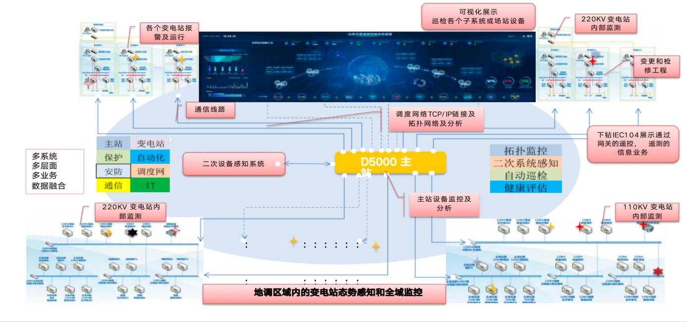XX地調(diào)系統(tǒng)二次設(shè)備拓撲及運行態(tài)勢感知是對二次設(shè)備和系統(tǒng)的運行狀態(tài)實時監(jiān)控和運行趨勢。基于資源圖譜對系統(tǒng)的整體感知,知識圖譜和貝葉斯網(wǎng)絡(luò)AI及可視化運維應用技術(shù),實現(xiàn)電網(wǎng)精益化安全分析,推動電網(wǎng)運行智能運維,電網(wǎng)運維的數(shù)字化轉(zhuǎn)型,全面支撐電網(wǎng)安全優(yōu)質(zhì)運行和調(diào)度管理精益高效運轉(zhuǎn)。