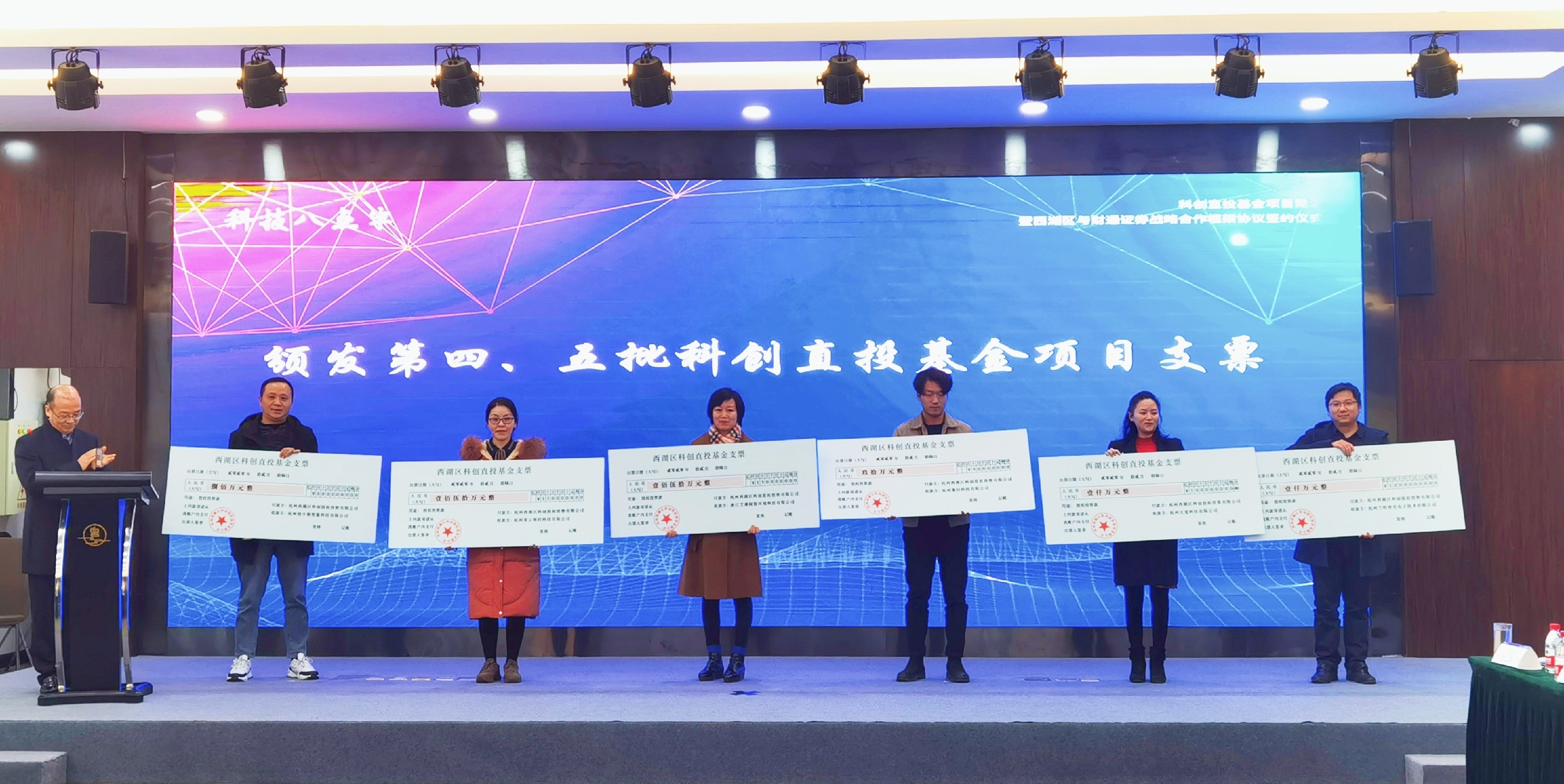 天寬副總徐宏上臺領取西湖區(qū)科創(chuàng)直投基金支票