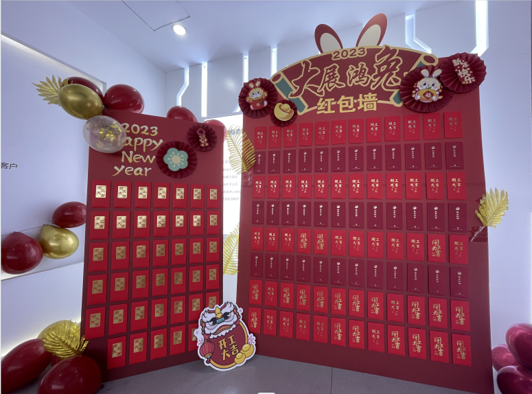 今日活動(dòng)現(xiàn)場(chǎng)還準(zhǔn)備了幸運(yùn)紅包墻,滿墻的紅包,預(yù)祝新年紅紅火火,蒸蒸日上!