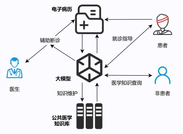該方案基于AI模型分布式并行計(jì)算框架,通過(guò)對(duì)醫(yī)學(xué)知識(shí)與患者病歷的收集與清洗,構(gòu)建公共醫(yī)學(xué)知識(shí)庫(kù)以及在線電子病歷檔案庫(kù),結(jié)合本地部署的大語(yǔ)言模型在患者端提供快速、無(wú)門(mén)檻的醫(yī)學(xué)知識(shí)咨詢以及就診指導(dǎo)服務(wù);在醫(yī)學(xué)工作者端,利用RAG、ICL技術(shù)以及知識(shí)補(bǔ)全、知識(shí)推理技術(shù),結(jié)合華為MindSpore和Ascend AI芯片的大模型與知識(shí)圖譜的深度緊耦合實(shí)現(xiàn)輔助斷診,基于患者電子病歷進(jìn)行關(guān)鍵特征分析,輔助進(jìn)行精準(zhǔn)快速的斷診和處理建議,也可為病患或個(gè)人提供個(gè)性化的,豐富的醫(yī)學(xué)知識(shí)獲取渠道,給出就診建議、用藥建議、生活中注意事項(xiàng)等建議參考,助力構(gòu)建中國(guó)式現(xiàn)代化醫(yī)療服務(wù)新范式。
