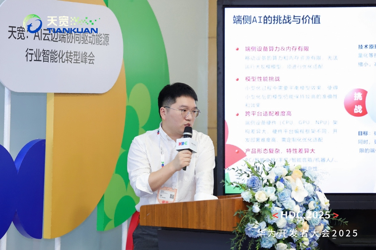 隨著AI能力從中心向邊緣下沉,端側(cè)智能化成為不可逆轉(zhuǎn)的趨勢。天寬CTO龔徐建以《基于鴻蒙的端側(cè)AI解決方案》為題,詳細介紹了公司在輕量模型設計與推理框架構(gòu)建上的核心能力。該方案已與鴻蒙系統(tǒng)深度協(xié)同,在手機、平板等設備中實現(xiàn)“本地智能”部署,極大提升了AI在端側(cè)的響應效率與部署靈活性。