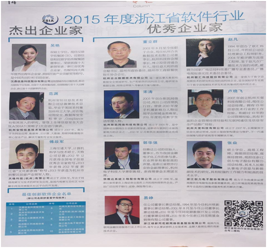 熱烈祝賀我司榮膺“2015年度浙江最佳創(chuàng)新軟件企業(yè)”稱號(hào)