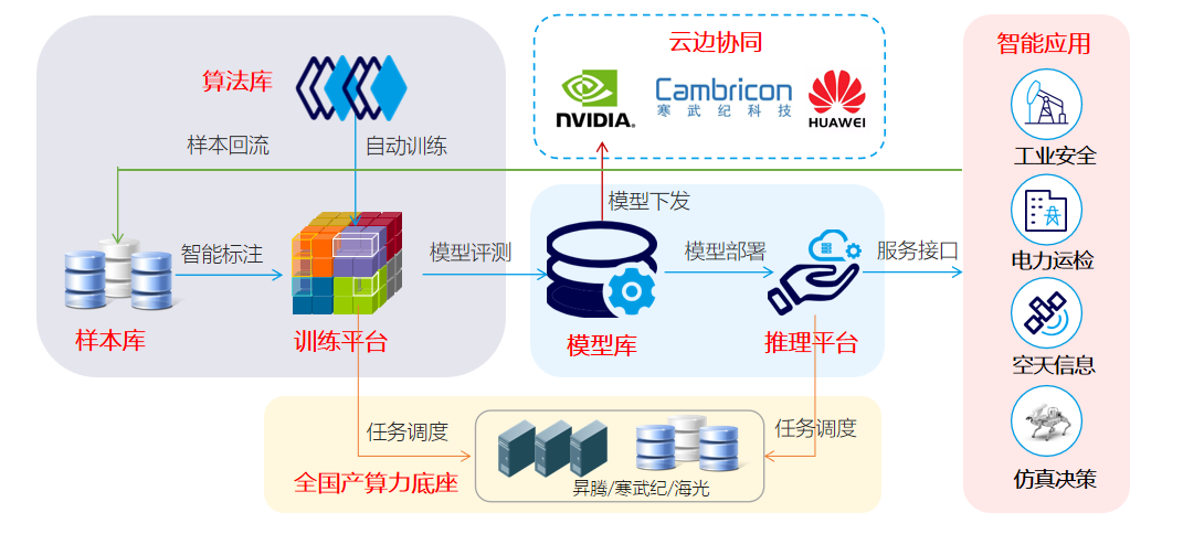 異構(gòu)算力調(diào)動平臺是基于MLOPS的AI平臺,提供算力自動調(diào)度、數(shù)據(jù)自動標(biāo)注和算法自動訓(xùn)練能力 ,通過可視化操作和自動化的流程管理讓用戶零代碼即可快速上線智能應(yīng)用,打造數(shù)據(jù)、算力和算法“三位一體”、“端到端”的企業(yè)級人工智能平臺解決方案。